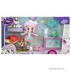 Набор включает в себя мини-куклу Флаттершай, 4 фигурки домашних животных, и 11 аксессуаров.